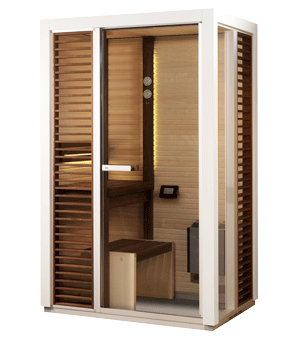 They simply clip together, so no screws are needed for assembly. The sleek lines of the design are a joy to behold – and simplicity itself to clean. The detachable jalousies make the sauna room even more versatile and also help making it easy when cleaning.